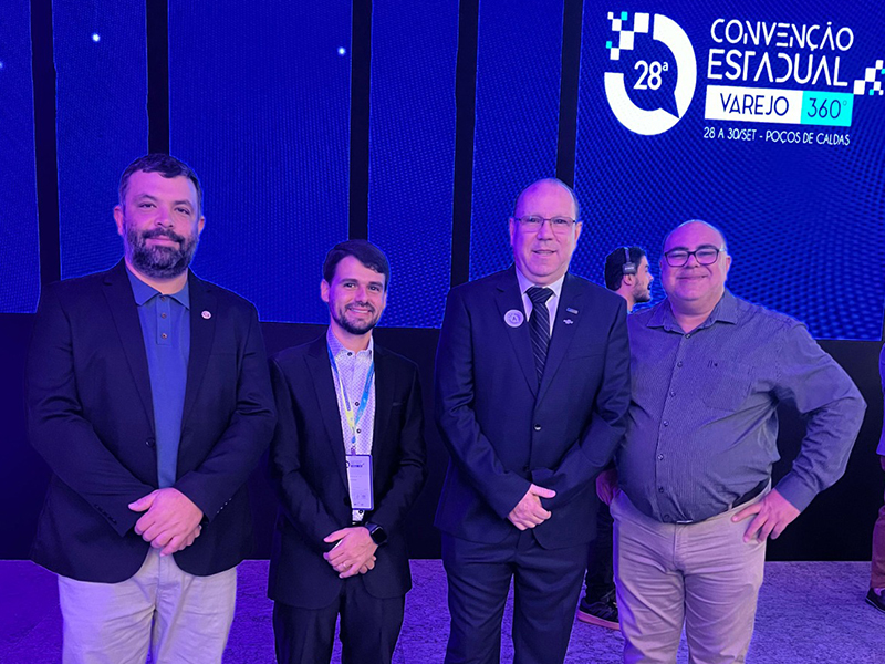 O presidente Thiago Batista de Almeida, a diretora Poliana Aparecida Gonçalves de Almeida, e as colaboradoras Ana Clara Queiroz Carrilho e Ana Flávia Marques Pires Leite representaram a ACIP/CDL na Convenção Varejo 360, promovida pela FCDL-MG.